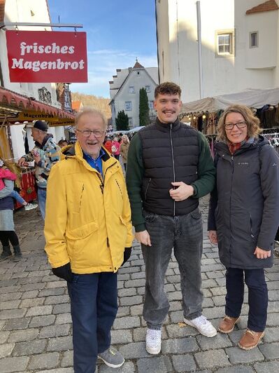 Yannik Hummel besuchte am Montag, den 10.11.2025, den Trochtelfinger Martinimarkt. Der SPD-Landtagskandidat für den Wahlkreis Münsingen-Hechingen konnte beim Bummel durch die Altstadt von Bürgermeisterin Fischer und dem Ortsvereins-Co-Vorsitzendem P. Miny vieles über Trochtelfingen erfahren. Im dichten Marktgedränge gab es auch zahlreiche Gespräche mit interessierten Besuchern über persönliche Anliegen und die Landespolitik. Natürlich genoss er auch die kulinarischen Angebote der Marktstände.
